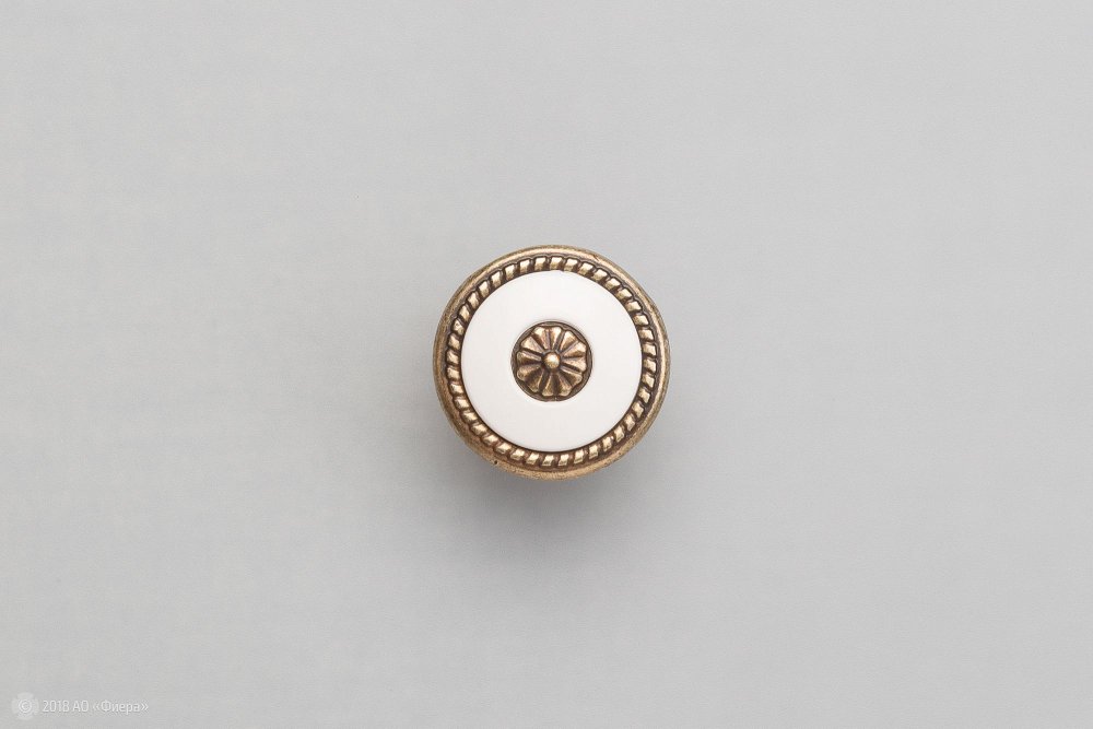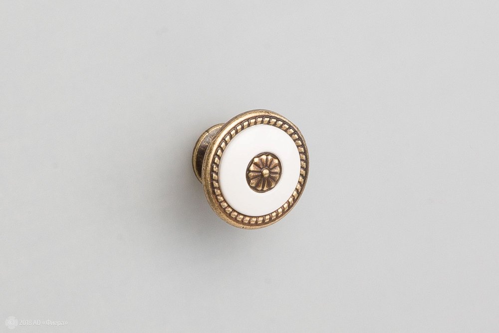 Мебельная ручка-кнопка FB027 в покрытии бронза с белой вставкой отлично подходит для мебели в стиле классика.